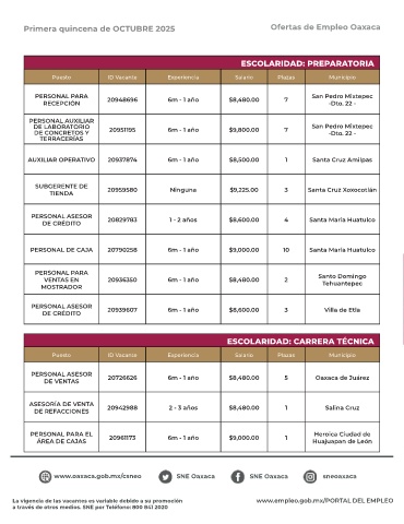 Primera quincena de OCTUBRE 2025 Ofertas de Empleo Oaxaca