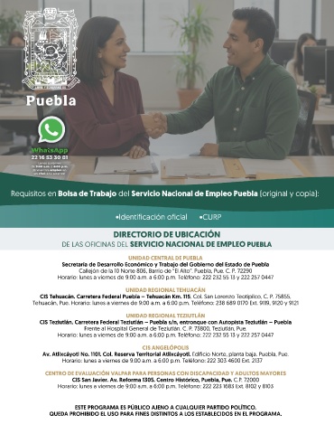 DE LAS OFICINAS DEL SERVICIO NACIONAL DE EMPLEO PUEBLA